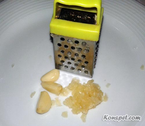 Шаг 4. Чеснок трем на мелкой терке: