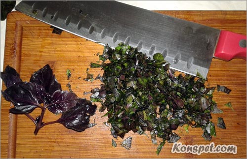 Шаг 5. Базилик мелко режем: