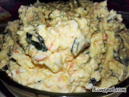 Для разнообразия, чтобы отойти от традиционного рецепта, можно дополнить его крабовыми палочками и свежим базиликом.