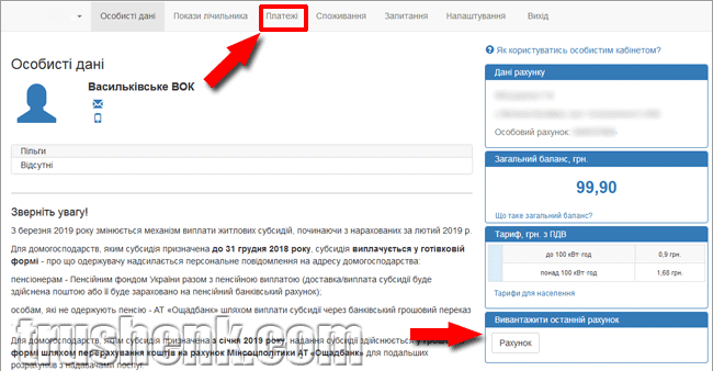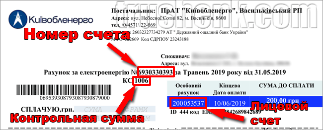 Затем в счете для оплаты электроэнергии смотрим Особовий рахунок и Номер рахунку за е/е.