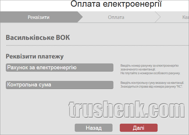 - Вносим реквизиты платежа — Особовий рахунок и Контрольну суму. Они есть на счете — см. рисунок выше.