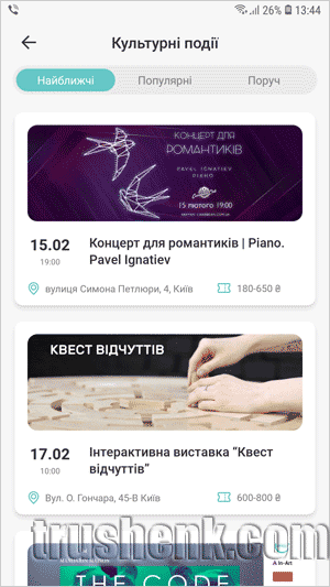 По какому принципу отбираются культурные мероприятия в ту или иную стопку не совсем понятно, да это и не важно.