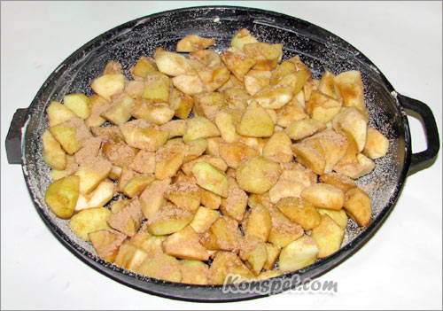 Можно сбрызнуть нарезанные яблоки соком лимона, чтобы они не потемнели (если успеете).