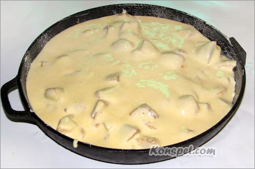 Диаметр моей формы (в моем случае — сковородки без ручки) — 28см.