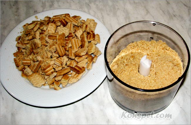 Половину нашего печенья перемалываем в мелкую крошку, другую половину ломаем кусочками.