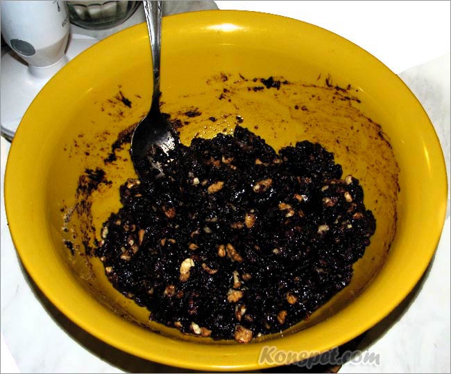 Если же таких запасов не оказалось, то более густым тесто можно сделать, добавив орехи.