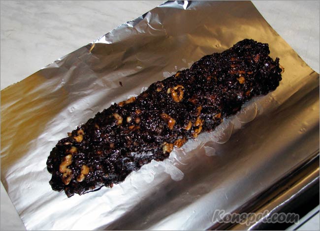 Это, чтобы в разрезе вид был, как в настоящей колбаске кусочки сала. А у нас вместо сала – кусочки печенья.