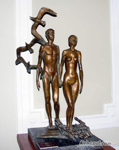 Скульптура называется не «Абсолютно голые мужчина и женщина куда-то идут», а более красиво: «Море, чайки, волны» — как-то так…