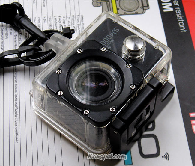 Камера SJCAM SJ4000 в боксе для подводной съемки.