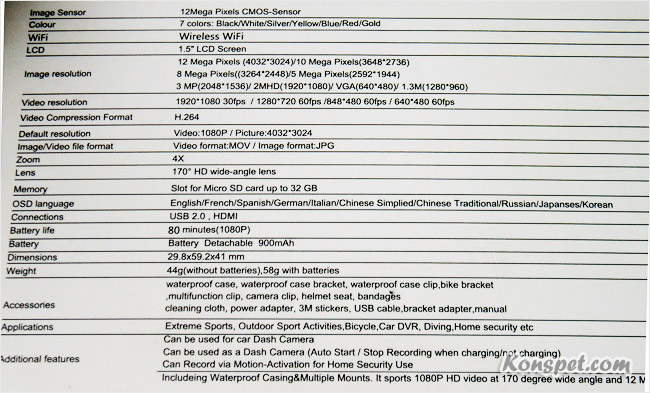 Характеристики SJCAM SJ4000 WiFi (v2.0)