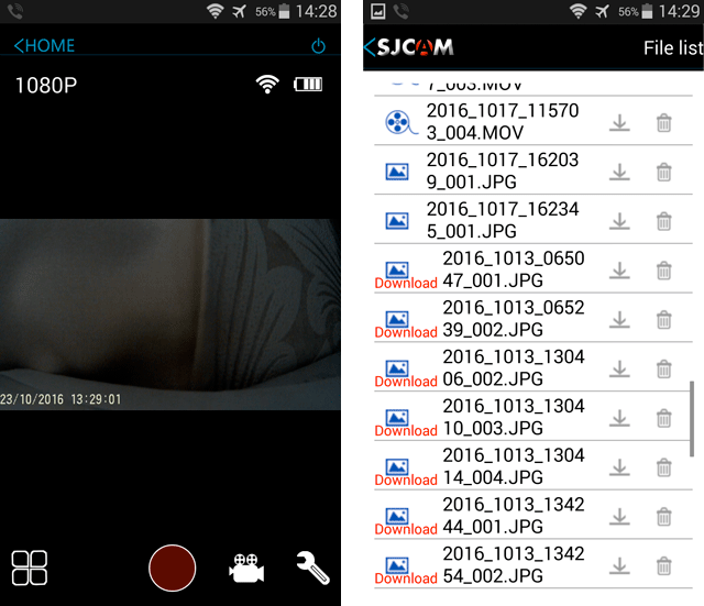 Скачиваем или удаляем файлы на камере через программу SJCAM HD