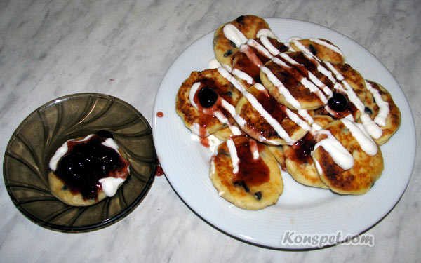 Подаем со сметаной или вареньем. Или с тем и другим.