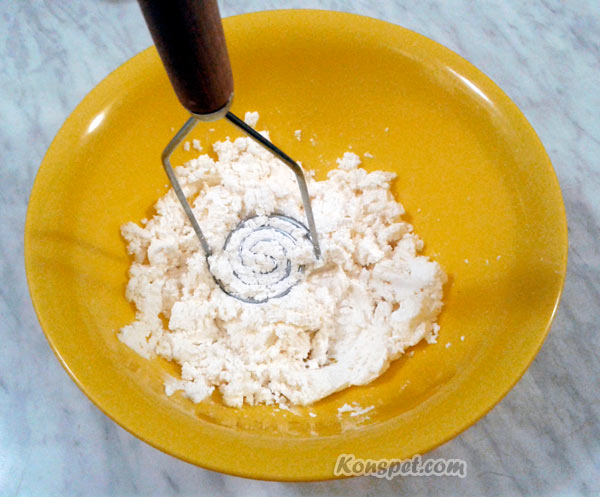 Творог разминаем вилкой или, что еще лучше, хорошо получается толкушкой для пюрешки.