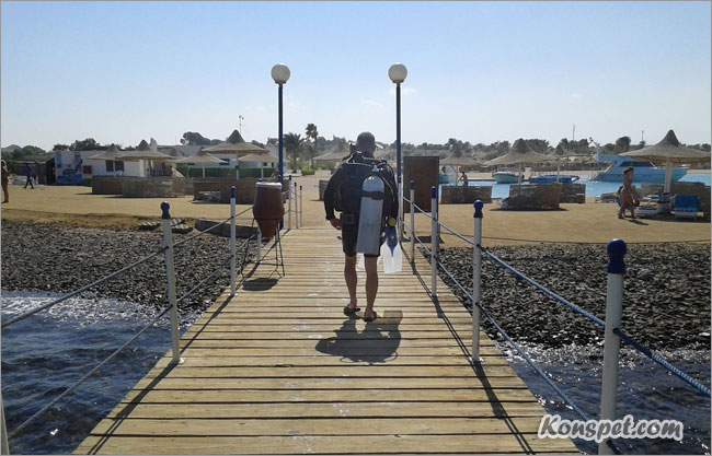 Один из арабов с неплохим знанием русского языка несколько дней активно обхаживал нас, но мы (вернее я) как-то отнекивались, пока он не предложил пробное бесплатное погружение.