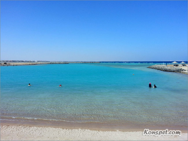 Рыб нет, кораллов нет — так, просто поплавать детям. И женщинам-арабкам, которые купаются в одежде и далеко в воду не заходят.