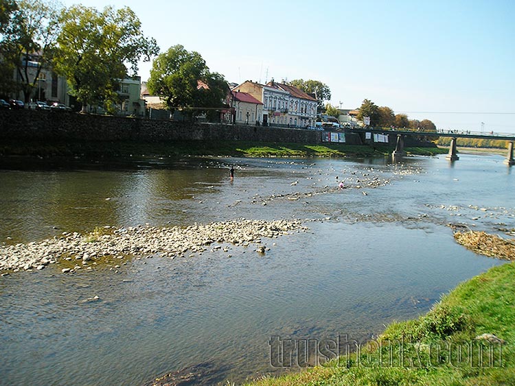 Рядом через Театральную площадь пройдемся по Пешеходному мосту Ужгорода. Кроме вида на реку, которая осенью не впечатляет своей мощью никак, на мостике есть интересные символы любви навеки. Как, наверное уже в любом более-менее крупном городе.