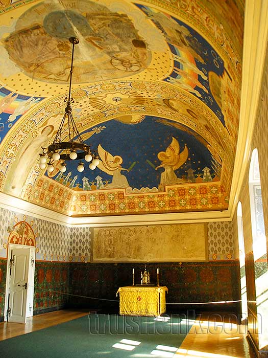 Лучше всего можно представить все строение замка в целом, если посмотреть на панораму под стеклом, которая стоит сразу за входом.