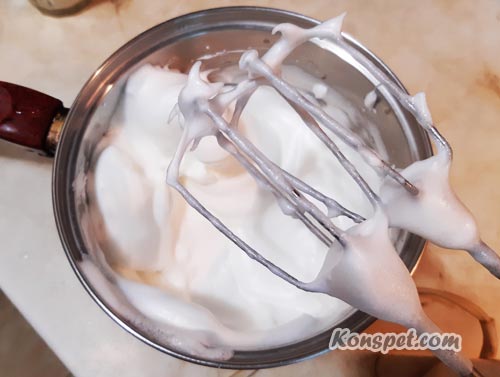 Взбиваем белки с половиной порции сахара до пены, чтобы не вытекали из емкости: