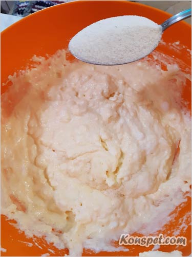 Количество манки также зависит от консистенции творога. Если творог сухой, то манки кладем чуть меньше.