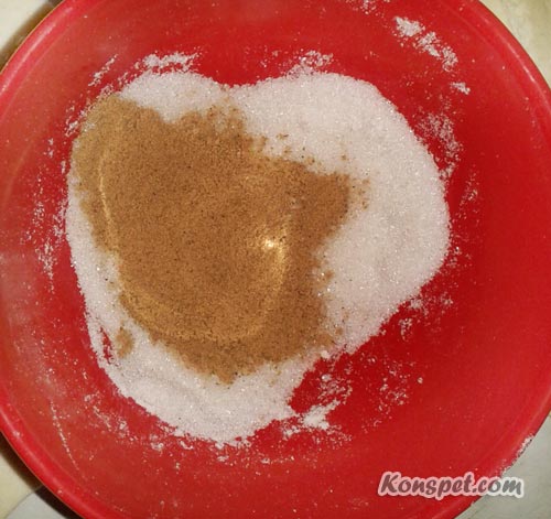 Можно сахар перемешать с корицей и в эту смесь обмакивать наши будущие печенья: