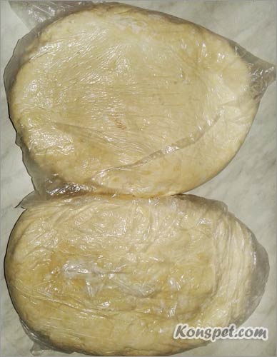 Через час берем одну из половинок и раскатываем толщиной примерно 3-5мм.