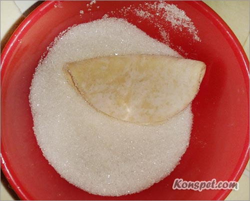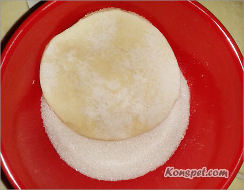 Каждый кружочек обмакиваем в сахар с одной стороны: